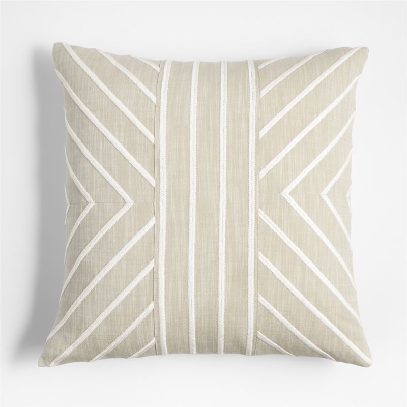 Oversized fishbone stitches embroider this textural pillow with crisp, raised lines. Designed by Lisa Whittington, the pillow embellishes slubbed natural organic cotton with an ivory chevron pattern wrapped in a band of stripes. We love the dimension and geometry it brings to an arrangement of neutral throw pillows on a sofa or bed. Our exclusive lumbar pillow includes your choice of a plush feather-down or lofty down-alternative insert.