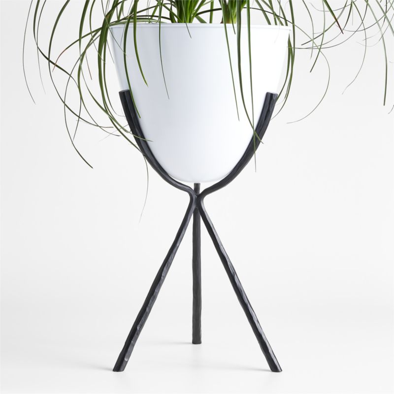 Inspired by mid-century metal planters, Emery offers bold contrast in textured black and smooth bright white. Iron shapes both the planter and stand, elevating an egg-like vessel on a twisting tripod. Timeless and curated, our large outdoor planter fits seamlessly in any modern space. Group with the other pieces in our Emery collection for a tiered botanical display.