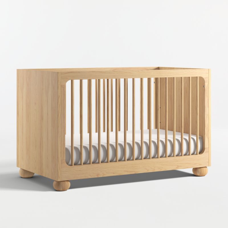 Emery Natural Oak Wood Convertible Baby Crib with Toddler Bed Rail