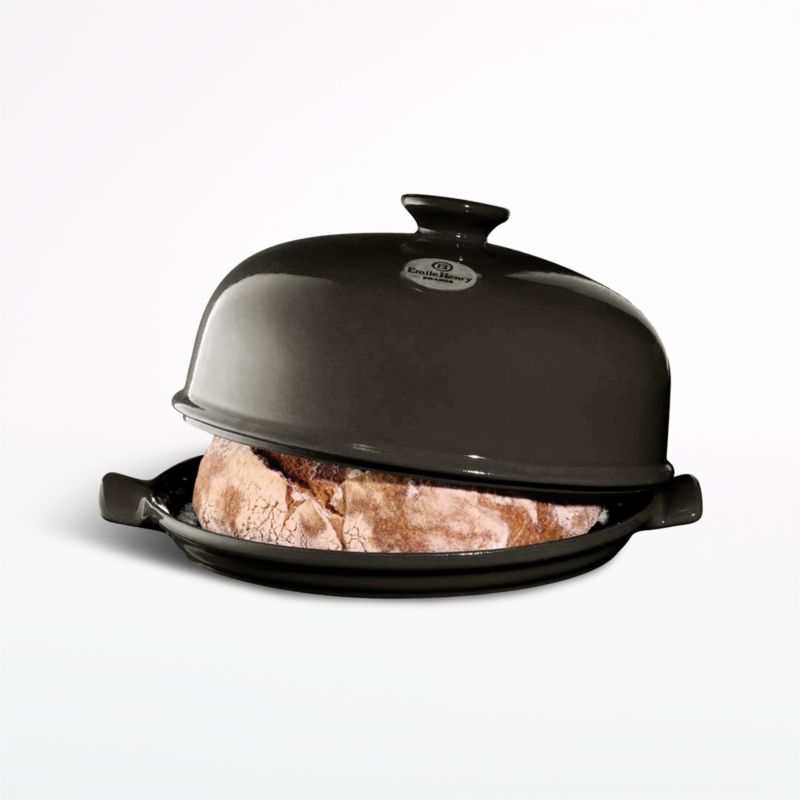Bake dreamy artisanal loaves of sourdough, olive-rosemary and cranberry-walnut bread with this handmade bread cloche from Emile Henry. Crafted of clay from the Burgundy region of France, the lidded baker creates an ideal, miniature bread oven in your own oven. The unglazed interior of the dome controls humidity, while the ribbed base allows airflow to crisp the crust. Glazed in dark charcoal on the outside, the classic cloche charms on open shelving and makes a sweet gift for the passionate bread baker.