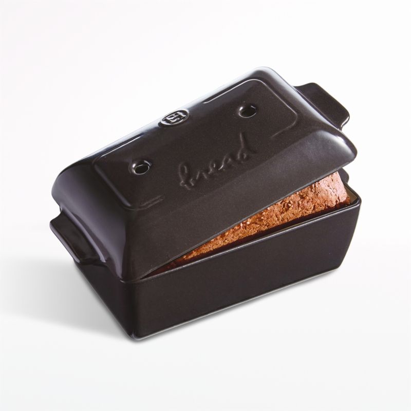Bake dreamy artisanal loaves of maple-pecan, deli rye and classic white sandwich bread with this handmade baking dish from Emile Henry. Crafted of clay from the Burgundy region of France, the lidded bread loaf baker creates an ideal, miniature bread oven in your own oven. The unglazed interior of the lid controls humidity, while holes ensure a perfectly crispy crust. The ribbed base elevates the loaf to encourage airflow and prevent sticking. Glazed dark charcoal on the outside, the lidded pan does double duty baking meatloaf, pot pie and desserts.
