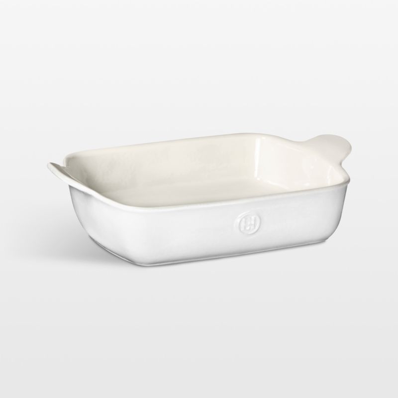 This handsome baking dish makes an elegant presentation of enchiladas, breads and fruit cobblers. Made by hand from high-fired clay from the Burgundy region of France, the ceramic pan diffuses heat gently and evenly for impeccable results. Graceful handles and a creamy interior complete the glazed baker for a timeless look that goes from oven to table with style.