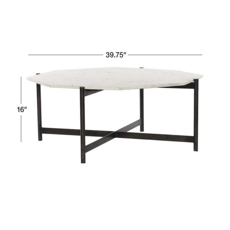 Emilia White Marble and Grey Iron 40" Polygon Coffee Table
