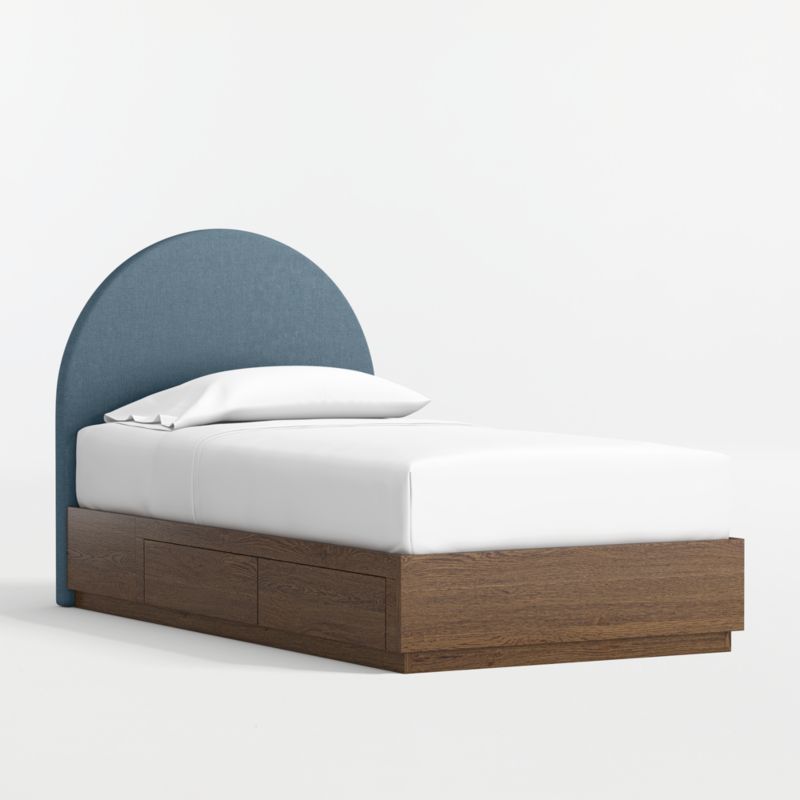 • View Emma Denim Blue Upholstered Kids Twin Headboard with Deep Brown Wood Storage Base - image 3 of 7