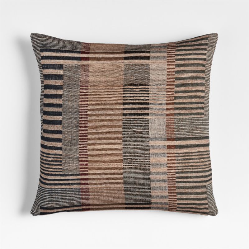 Selma Wool Blend Stripe 23"x23" Carmelo Tan Throw Pillow with Feather Insert