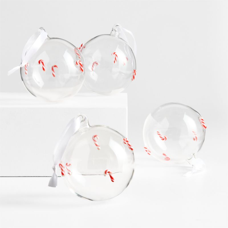 European Candy Cane Glass Ball Christmas Ornament, Set of 4
