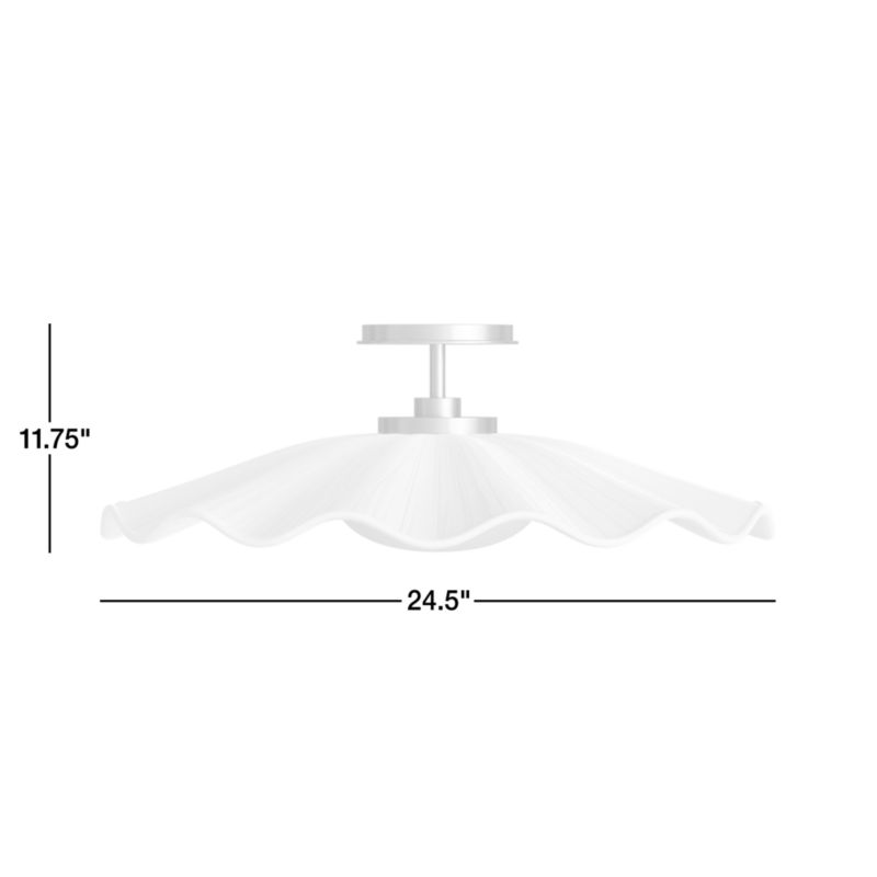Our Everly ceiling light looks like it twirled its way right up to the ceiling. The ruched white fabric shade ripples in soft waves while the frosted globe glows gently underneath. A brass canopy gives it just the right amount of polish without feeling stuffy. It's a delicate, airy design that brings a little swirl of fun to the room—yet still easily transitions from nursery to big-kid room.