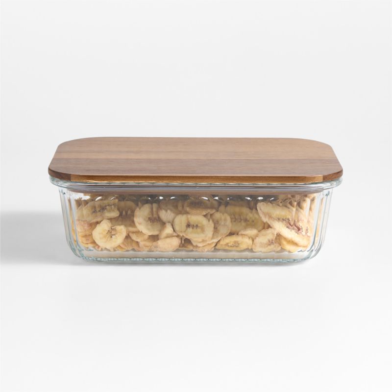 Extra-Large Plisse Glass Rectangular Storage Container with Wood Lid by Laura Kim