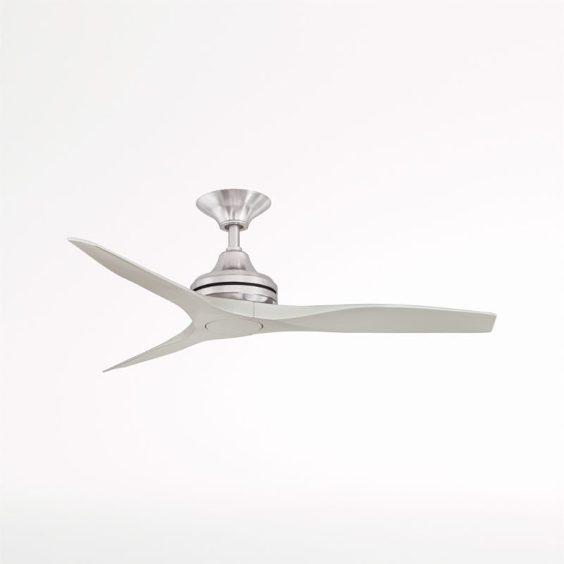 Inspired by a vintage propeller, this sophisticated fan brings its understated good looks to any room. The remote-controlled ceiling fan offers three speeds and reverses for seasonal use—counterclockwise in the summer, clockwise in the winter. Finished in brushed nickel, the fan's streamlined metal fixture supports three wood blades. Damp rated, the fan can be installed indoors or out.