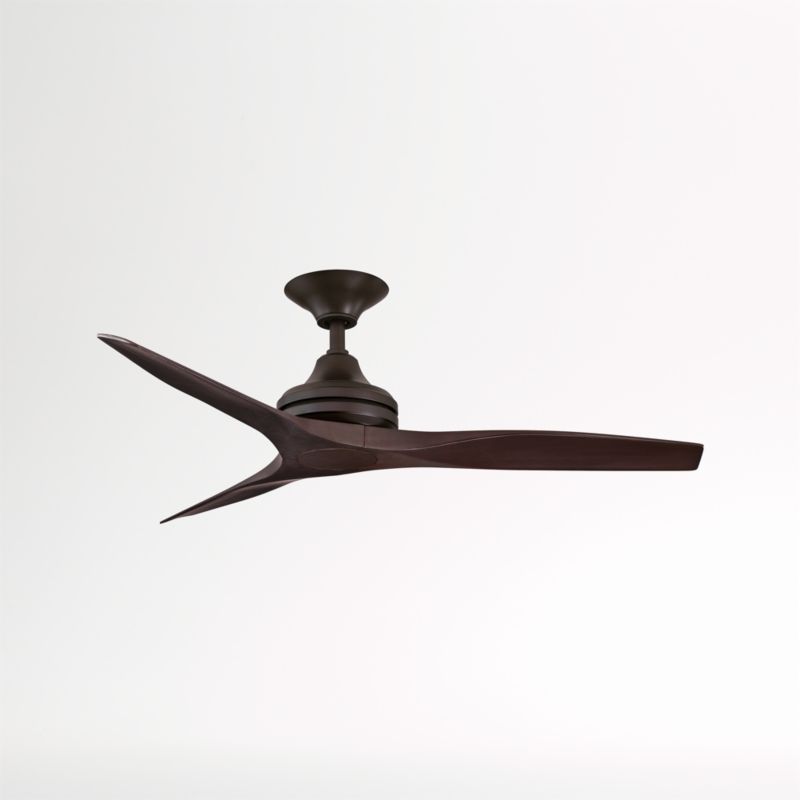 Inspired by a vintage propeller, this sophisticated fan brings its understated good looks to any room. The remote-controlled ceiling fan offers three speeds and reverses for seasonal use—counterclockwise in the summer, clockwise in the winter. Finished in dark bronze, the fan's streamlined metal fixture supports three walnut-stained wood blades. Looking great in a range of decor styles, the fan is damp rated for installation in outdoor spaces as well.