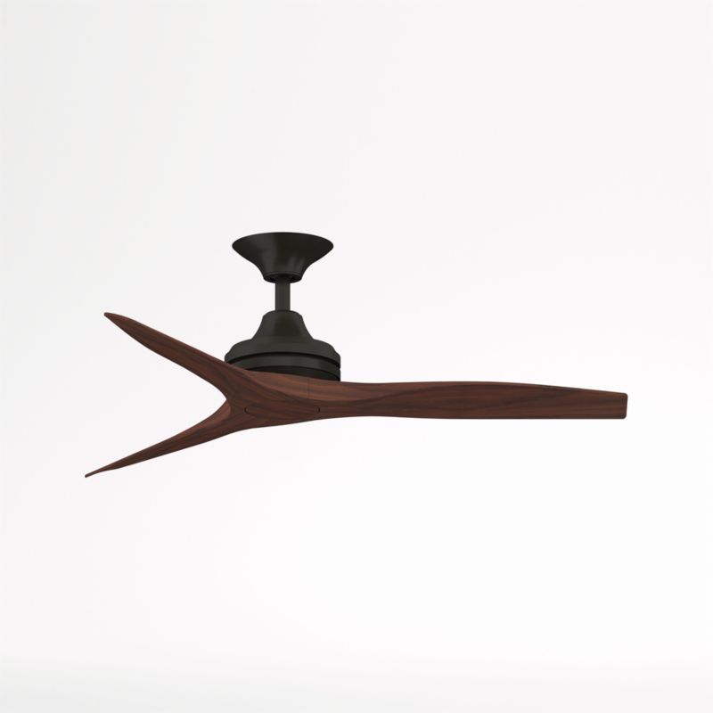Inspired by a vintage propeller, this sophisticated fan brings its understated good looks to any room. The remote-controlled ceiling fan offers three speeds and reverses for seasonal use—counterclockwise in the summer, clockwise in the winter. Finished in dark bronze, the fan's streamlined metal fixture supports three wood blades stained a warm whiskey brown. Looking great in a range of decor styles, the fan is damp rated for installation in outdoor spaces as well.