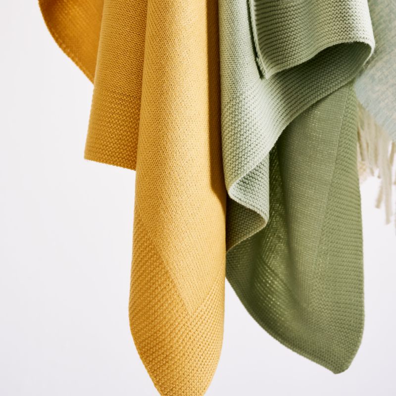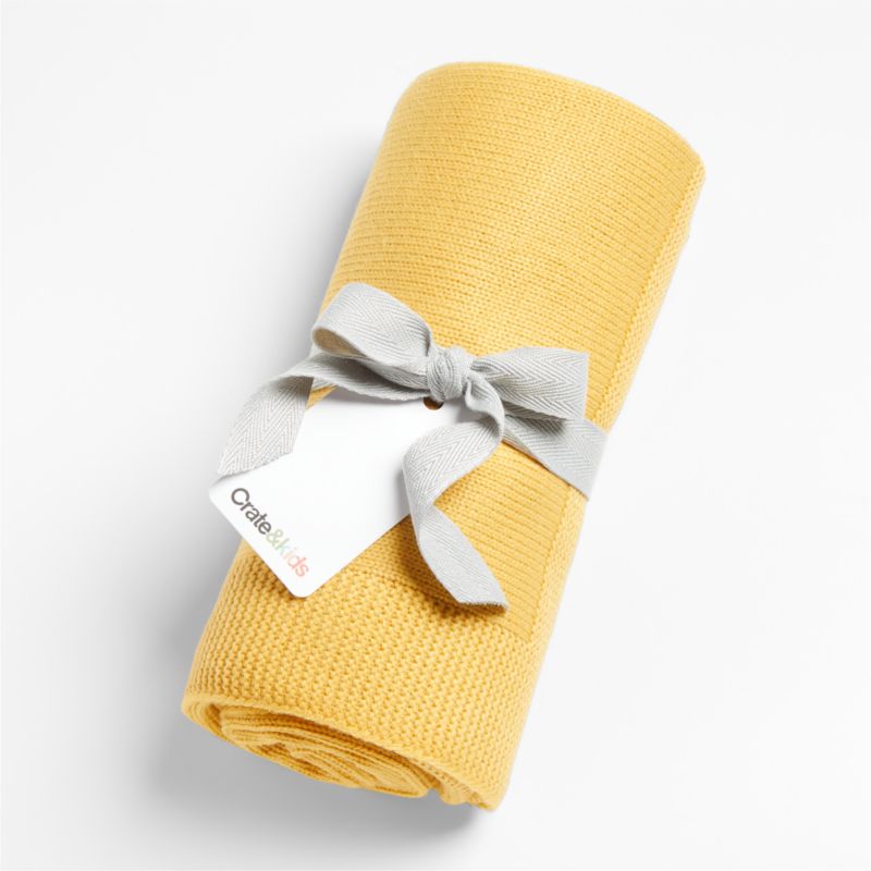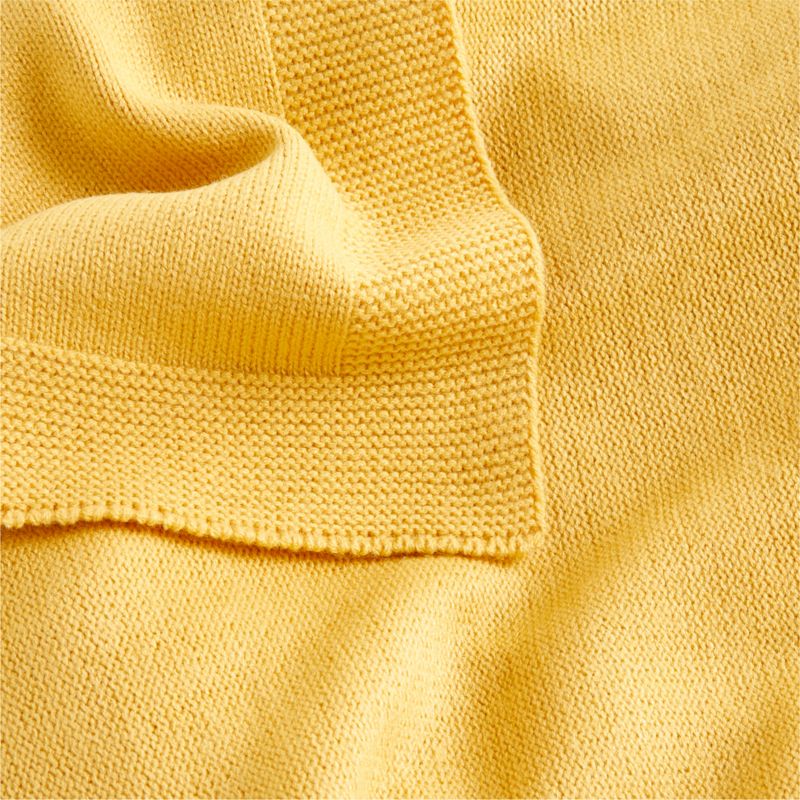 Cozy, cuddly and lightweight, our stroller blanket in sunshine yellow provides just the kind of warmth babies love. The acrylic knit is both incredibly soft and strong, and provides an insulating layer from cool breezes or brisk winds. The fiber has the added benefit of breathability to keep little ones at a comfortable temperature throughout the day's adventures. A broad border in a contrasting knit stitch stands up to tugs, pulls and twists from tiny fingers, and on top of all this, the stroller blanket is machine washable to help maintain its classic style and beauty for years to come.