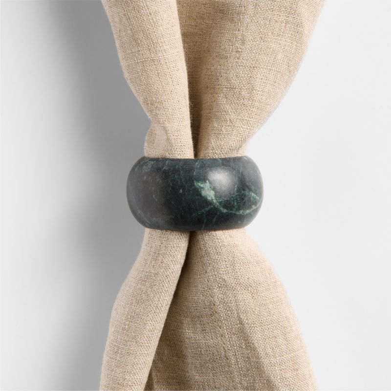 Complement table settings with the natural beauty of green marble. Crafted with a domed shape, the hand-finished napkin ring showcases the stone's deep green color and white veining unique to each piece.