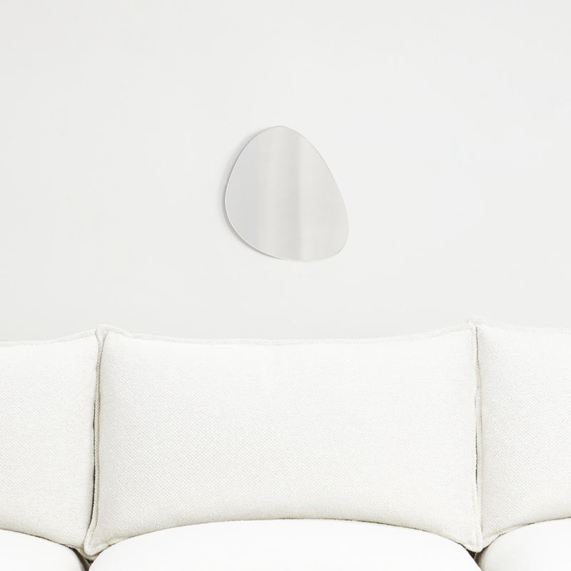 Evocative of a perfectly rounded pebble, this triangular mirror graces the wall with an intriguing organic shape. Free of a frame, Feron floats soft curves that mirror the room in a uniquely modern way. Hang the petite mirror anywhere your home could use a helpful reflection and a bit of shimmer. Part of our Feron collection, the small modular mirror is a Crate and Barrel exclusive.