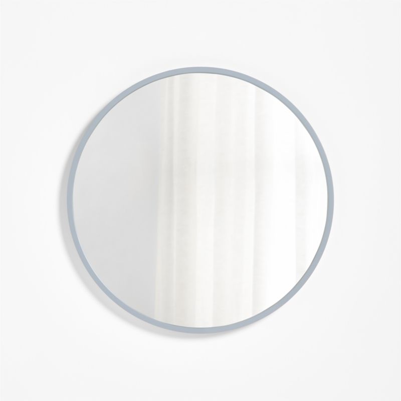 Edged with a slim band of wood, our Finn wall mirrors make a modern, minimalist design statement in the nursery or kid's room. The blue finish of the clean-lined, understated mirror blends seamlessly with a variety of our bedroom and nursery furniture collections.