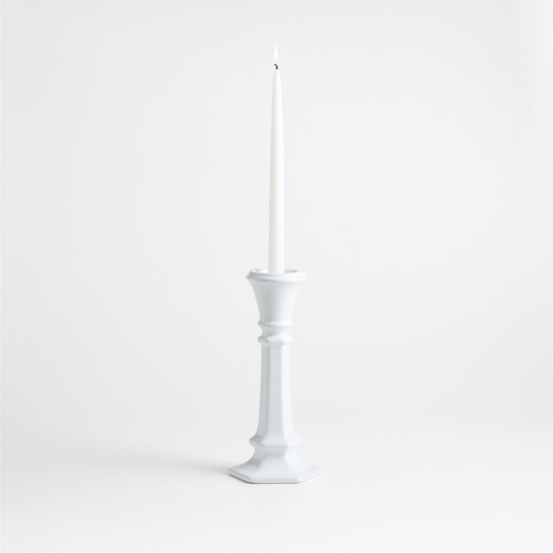 Hand-turned spindles seen in Italian woodworking inspired the ornate silhouettes of our Firenze candle holder collection. Talented artisans cast the stoneware candlestick by hand to create the classical facets, while the thick white glossy glaze looks fresh and modern. Designed to hold a taper, tealight or votive, this versatile candle holder effortlessly suits your mood and occasion.