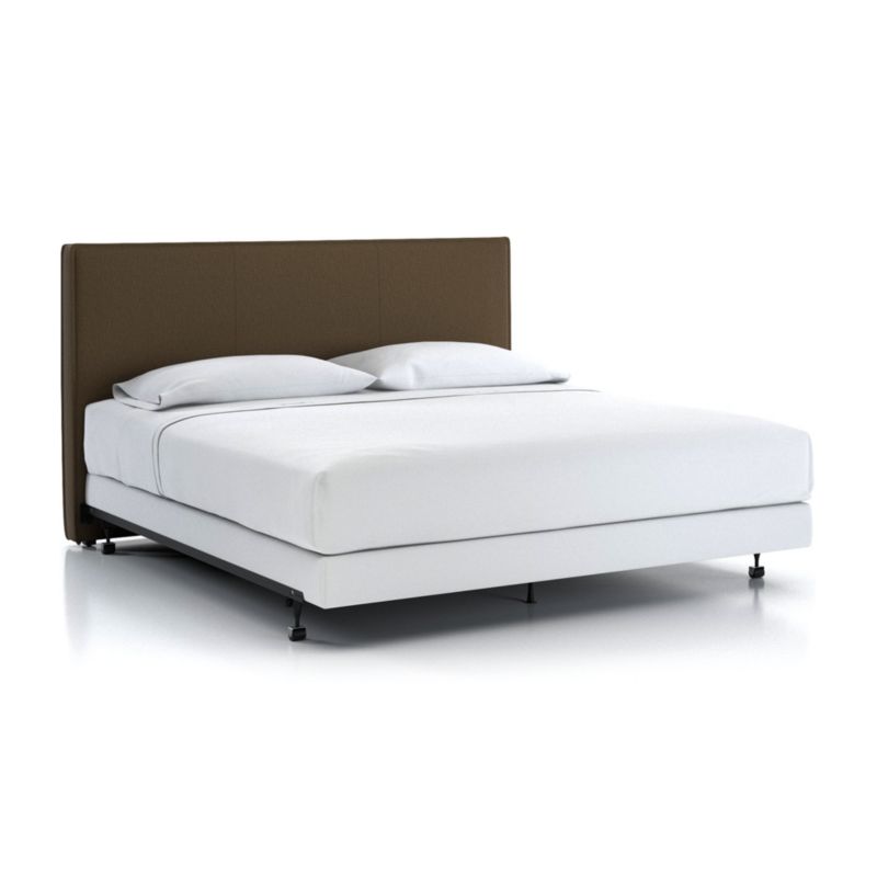 Fresh flanged edges and subtle seaming tailor our Flange headboard for the modern bedroom. The headboard is fully upholstered in fabric or faux leather on the front and back, giving you more flexibility in setting up the bedroom you desire. Pair with our metal bed frame or one of our upholstered storage bed bases. The Flange Headboard is a Crate and Barrel exclusive.