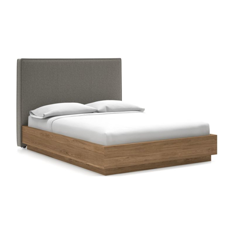 Flange Queen Headboard with Batten Plinth-Base Bed Felt Grey