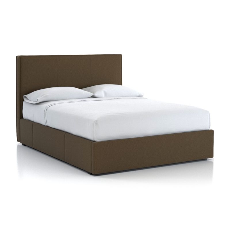 Best of all, side drawers can be accessed without running into bedside furniture. Fully upholstered front and back, this contemporary classic gives you more flexibility in setting up the bedroom you desire. The Flange Upholstered Headboard with Storage Base is a Crate and Barrel exclusive.