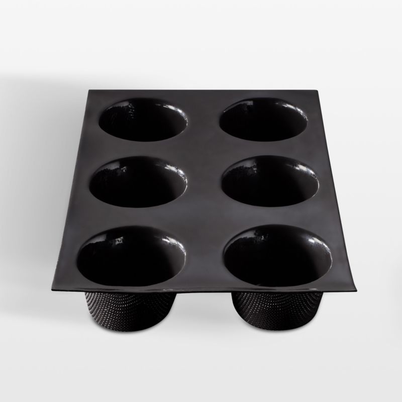 Bake without bothering with parchment, cooking spray, butter or oil. This ingenious non-stick mold bakes six muffins, cupcakes or mini frittatas that pop out effortlessly when done, leaving no mess behind. Simply place the pan on a cookie sheet, fill the wells with your favorite batter and bake as usual. The mold's flexibility allows baked goods to be pushed out perfectly, and the silicone muffin pan cleans up easily in the dishwasher.
