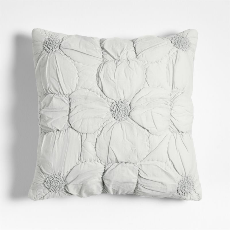Flora Voile Textured Organic Cotton 20"x20" Pale Blue Throw Pillow with Feather Insert