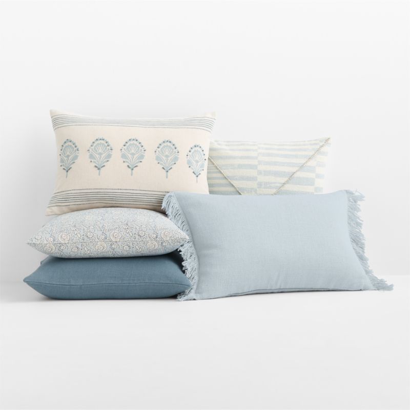 Morgan Organic Cotton 22"x15" Mist Blue Reversible Hand Printed Throw Pillow Cover