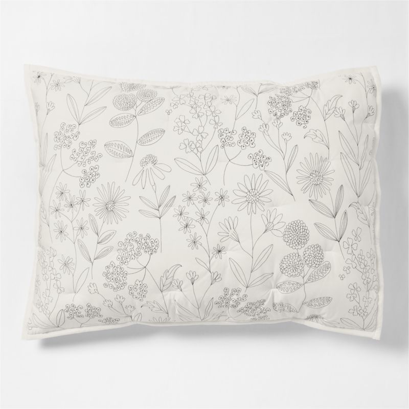 A meadow's worth of modern, minimalist flowers bloom on our Floral Line Art bedding collection. Printed in dark grey on ivory organic cotton voile, the whimsically drawn botanicals have a fresh, laid-back energy. Pair this supersoft pillow sham with the matching extra-long twin comforter to make a sweet-yet-sophisticated dorm room bed.