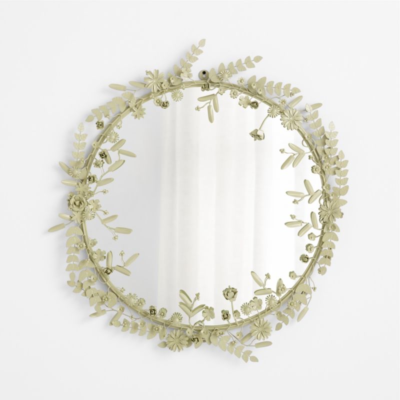 Borrowing inspo from traditional floral crowns, our round mirror is encircled with sprays of ornate foliage and flowers, which have all been intricately hand-sculpted of iron and beautifully highlighted with a matte sage green finish. The organic shape and structural design bring dimension to spaces both big and small.