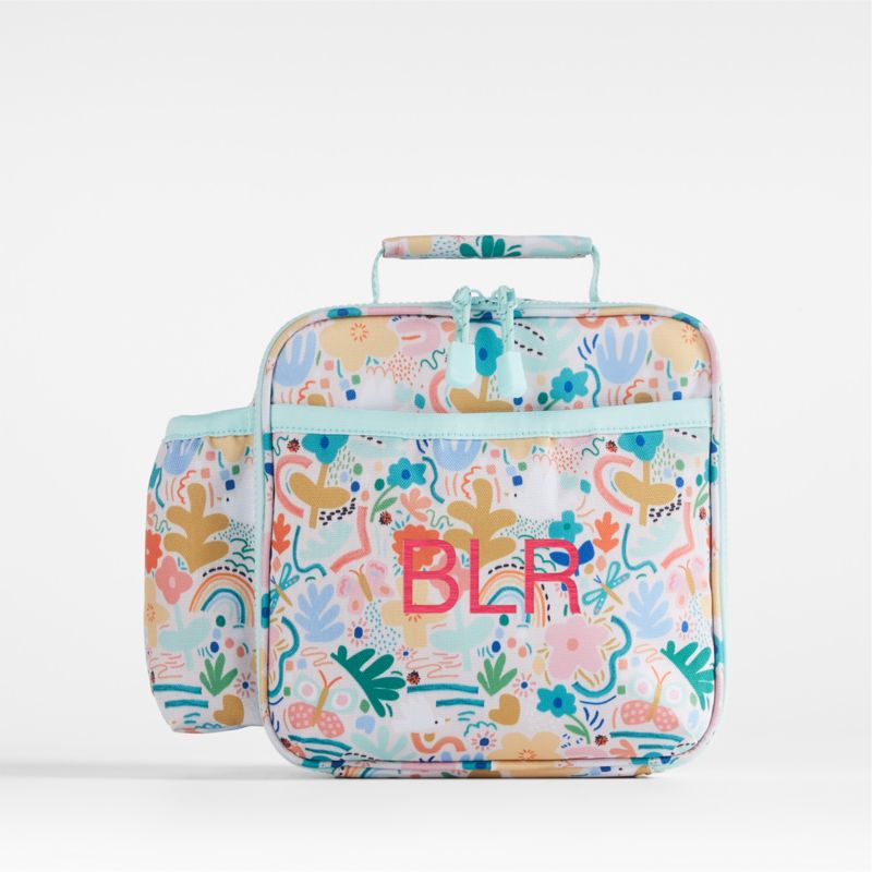 A fun and functional lunch box that's built to handle all the thrills and spills of the day. A colorful collection of garden friends flit and flutter over the bag's bright white exterior, and light aqua trim gives it a fresh flourish. Constructed of food-safe and supremely durable polyester made from recycled water bottles, our lightweight, easy-clean lunch box is roomy enough to hold multiple storage containers. Plus, it's insulated to keep meals just the way your kid likes them—hot, cold or somewhere in between. An outer pocket safely stows a napkin, utensils, daily reminder notes and more, and a designated water bottle pocket ensures their drink is always close at hand. Pair the floral lunch box with the matching Flower Garden backpack and water bottle to grow their collection.