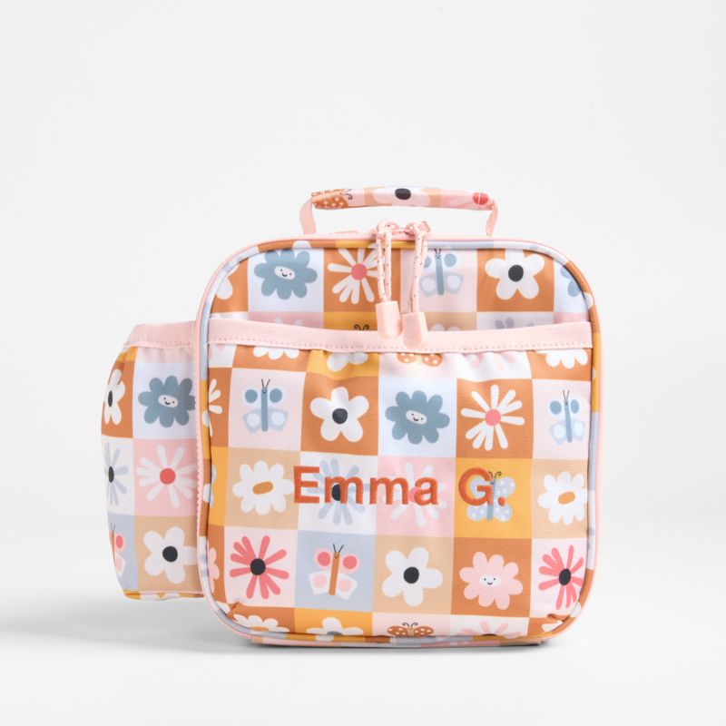 A fun and functional lunch box that's built to handle all the thrills and spills of the day. A colorful floral patchwork design decorates the exterior, and pink trim gives it the perfect finish. It's constructed of food-safe and supremely durable polyester fabric that includes recycled plastic bottles. It's also lightweight and easy to clean, plus roomy enough to hold multiple storage containers. An insulated lining keeps meals just the way your kid likes them—hot, cold or somewhere in between. An outer pocket safely stows a napkin, utensils, daily reminder notes and more, and a designated water bottle pocket ensures their drink is always close at hand. Pair the lunch box with the matching Flower Patch backpack for a totally coordinated look.