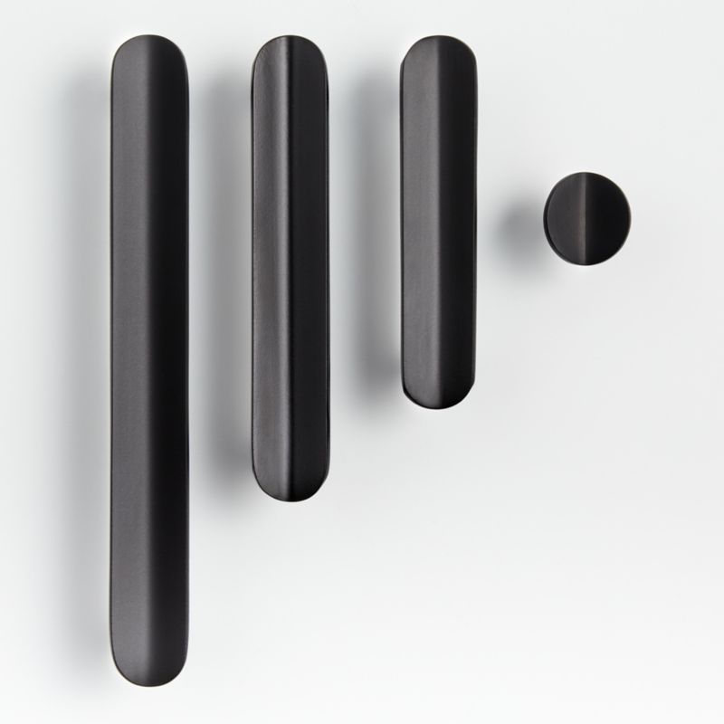 Update your kitchen or bathroom cabinetry, or give a quick refresh to a favorite piece of furniture with our striking Fold hardware. Featuring a subtly creased design and a sleek matte black finish, the easily installed oblong handles and round knob provide an instant update to painted or wood cabinets and drawers. The pull handles mount horizontally or vertically.