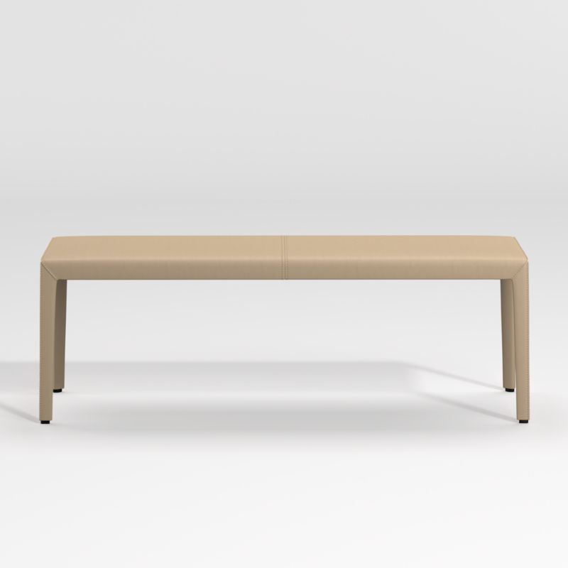 Pull up our Folio bench to the dining table or anywhere that could use some extra seating. Fully wrapped in beige top-grain leather, the bench reinterprets classic Italian design with clean Parsons-style lines and neat mitered corners, flange seaming and stitched construction refine the look.