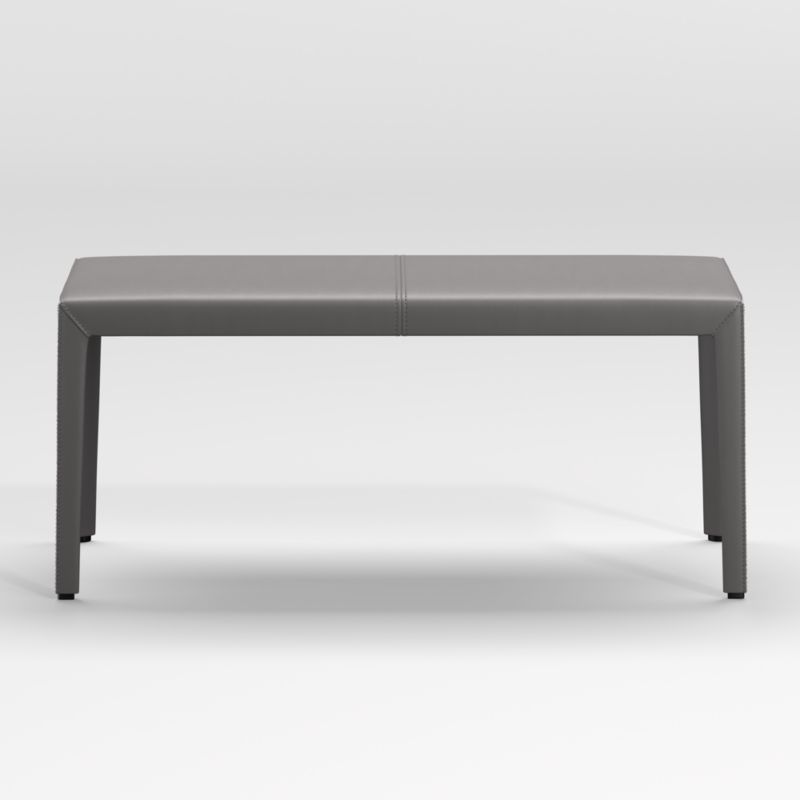 Seating two, the bench has an inviting, foam-cushioned seat. The Folio leather bench is a Crate and Barrel exclusive.