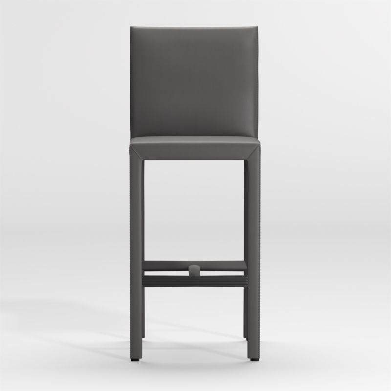 Pull up to the bar on our sleek, comfortable stool with reinterpreted Italian design inspiration, clean Parsons-style lines and luxe leather upholstery. Fully wrapped in top-grain leather in dark grey, the Folio bar stool is finished with neat mitered corners, flange seaming and stitched construction that have helped make it a customer favorite.