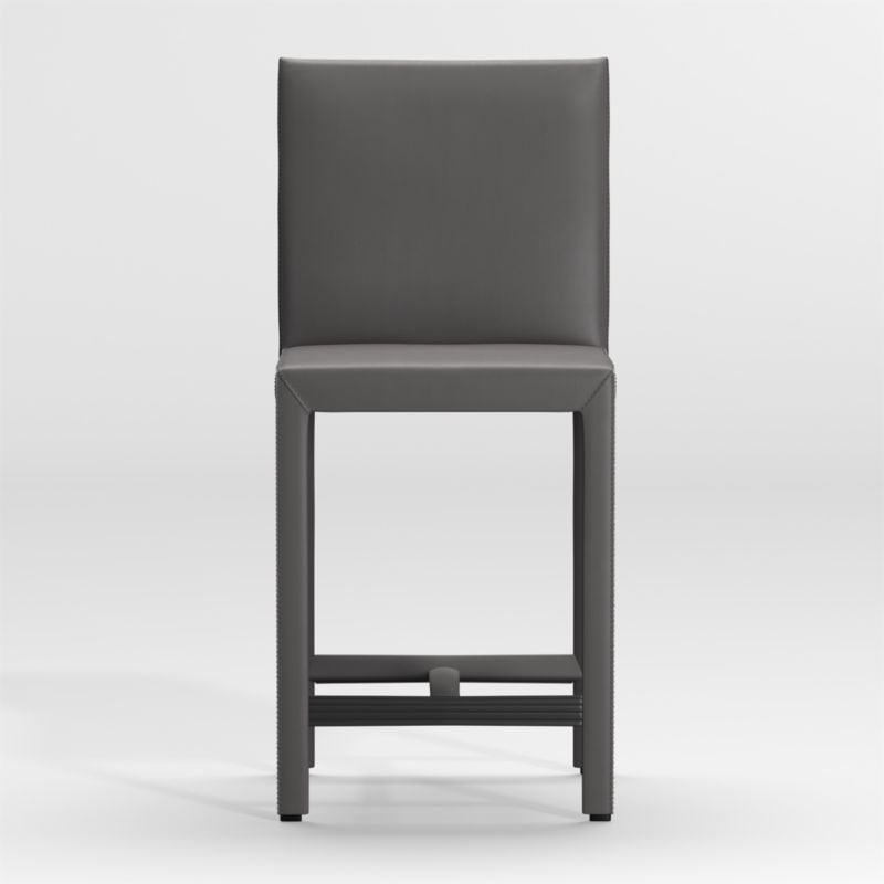 Pull up to the bar on our sleek, comfortable stool with reinterpreted Italian design inspiration, clean Parsons-style lines and luxe leather upholstery. Fully wrapped in top-grain leather in dark grey, the Folio bar stool is finished with neat mitered corners, flange seaming and stitched construction that have helped make it a customer favorite.