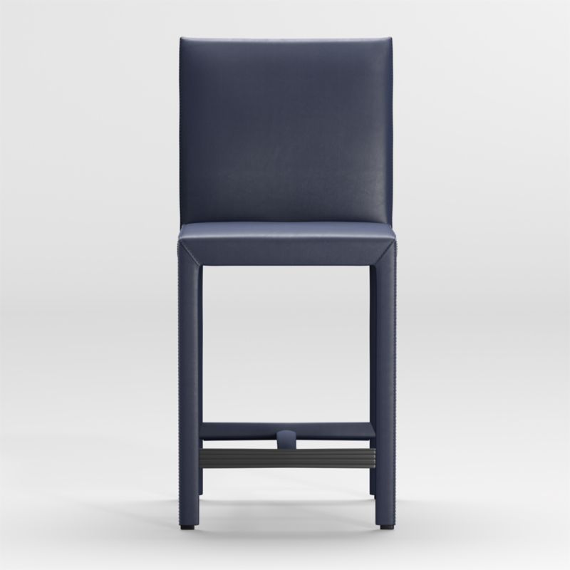 Folio Deep Blue Top-Grain Leather Counter Stool