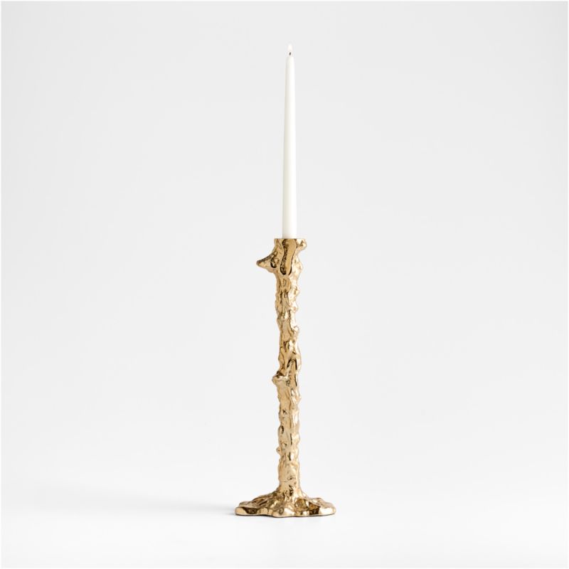 We love the artisan look of our Foundry table so much we made candlesticks to match. Textured with dribbles and drips, the hand-cast aluminum candle holder looks as if it were formed of molten metal. A bronze finish glints with reflected candlelight, further enhancing the dynamic look of this eye-catching table or mantel accessory.