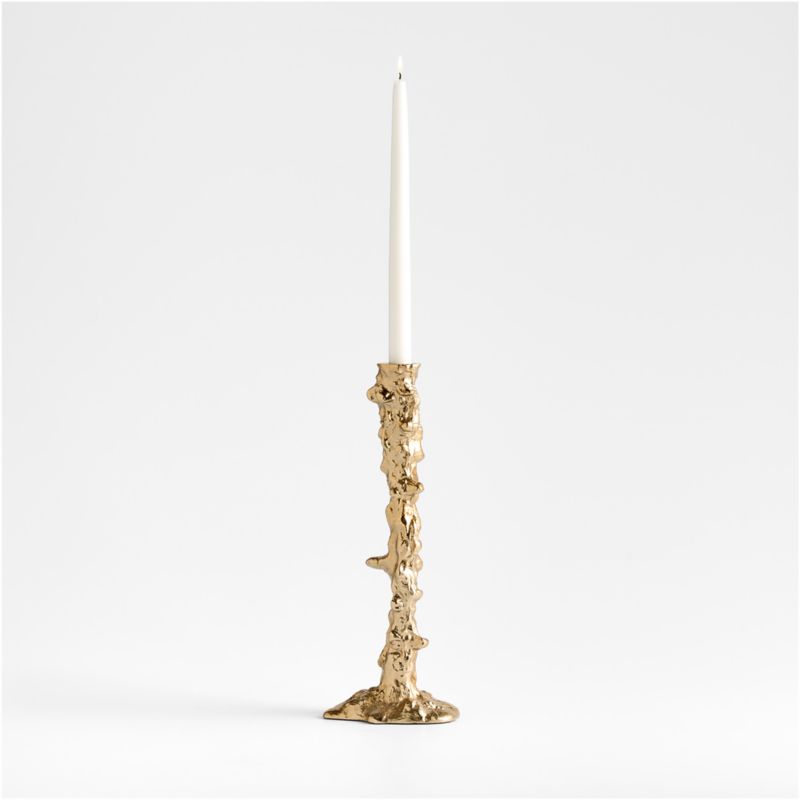 We love the artisan look of our Foundry table so much we made candlesticks to match. Textured with dribbles and drips, the hand-cast aluminum candle holder looks as if it were formed of molten metal. A bronze finish glints with reflected candlelight, further enhancing the dynamic look of this eye-catching table or mantel accessory.