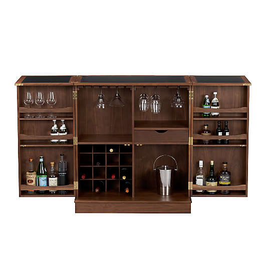 Elevate your home entertaining with gorgeous bar carts, bar cabinets and wine bar displays. Looking for a portable option? With a vintage-inspired bar cart, you can easily transport your bar around the room. Both glamorous and functional, bar carts are the ultimate blend of trendy and timeless. Select a home bar cabinet with polished wood trays or clear glass shelves to match. Use the shelves to store drink essentials, including wine, spirits and mixers. Available in a host of styles and sleek wood finishes, our modern bar cabinets make entertaining more stylish than ever. Use one to keep stemware and barware neatly organized alongside appetizer plates, bowls and napkins. For a completely different look, opt for a wine bar or tower instead. They bring a classic look to the home bar, and put all your favorite vintage on display. Also, consider an alternative, such as wood cabinets to store larger bar accessories, tools and more.