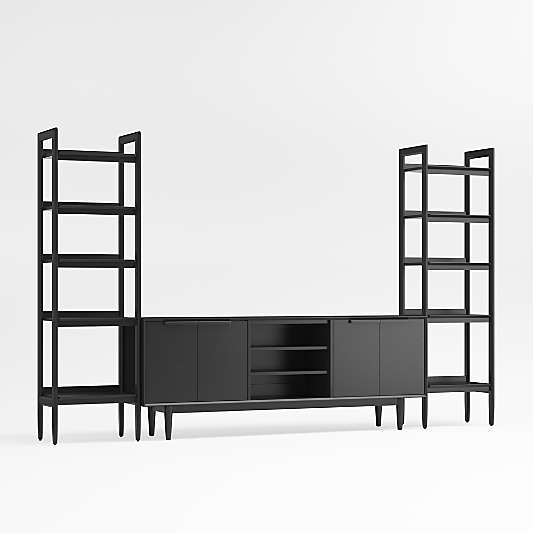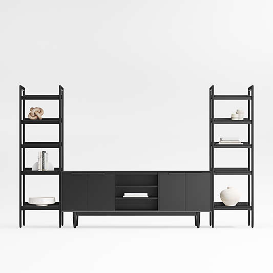 Complete your living room setup with a modern entertainment center. Not only do media consoles tie the space together, they also function as the focal point of many gatherings. Family movie nights, for example, get even better with a comfy and convenient place to watch the film. Movie viewings are also the ideal sleepover activity; help the kids get cozy on the sofa or modular sectional with pillows and blankets, then let the entertainment center shine. However, media centers serve as more than just TV stands. They also incorporate convenient storage space, either visible or enclosed depending on your preference. Media stands with cabinets and cupboards allow you to tuck gaming systems, cables and more out of sight. Too many entertainment options to fit in the media console? Consider a media tower. Tall media cabinets utilize vertical space to give a home to DVDs, Blu-ray discs, CDs, video games and other entertainment center accessories. Once all your AV equipment has been stowed away, fill any empty shelves on your media storage tower or console with decorative objects that complement the room's aesthetic.