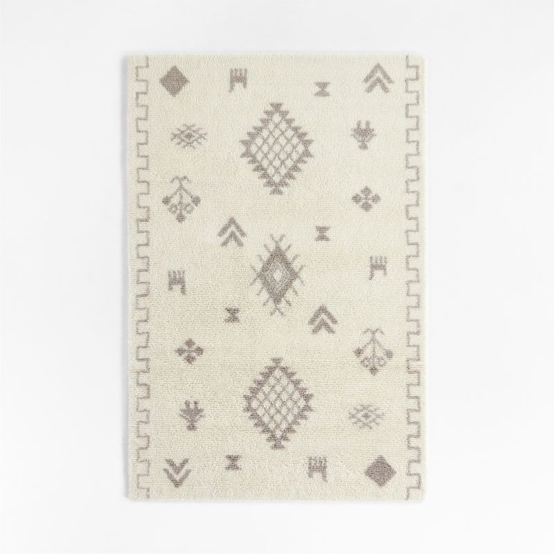 Easy to care for and easy to love, our Gabey Figures wool rug brings charming pattern and elevated style to kids' rooms and nurseries. Geometric designs and fun icons in a neutral beige play across an ivory background. Hand-tufted in 100% pure New Zealand wool—prized for its incomparable softness and lustrous sheen—this beautiful, premium-quality rug feels amazing underfoot, resists shedding and will last for decades.