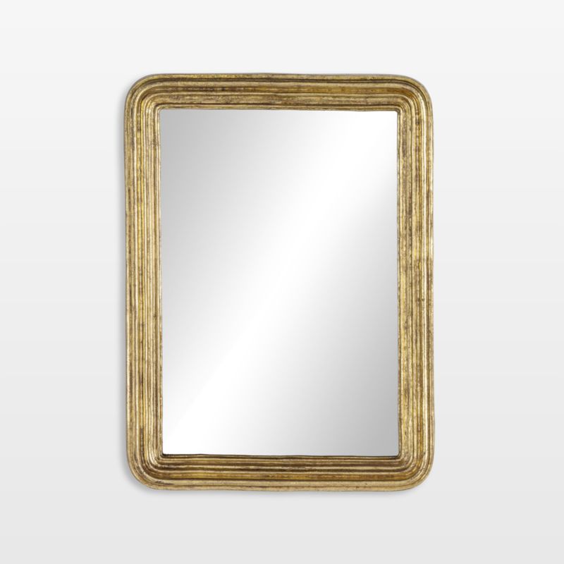Inspired by Art Deco design, the Gabriel mirror is clean lined and classic. Concentric molding lends linear interest to the aluminum frame, tempered by the rounded corners at the top. An antiqued gold leaf finish highlights the texture while giving the wall mirror the look of a vintage find.
