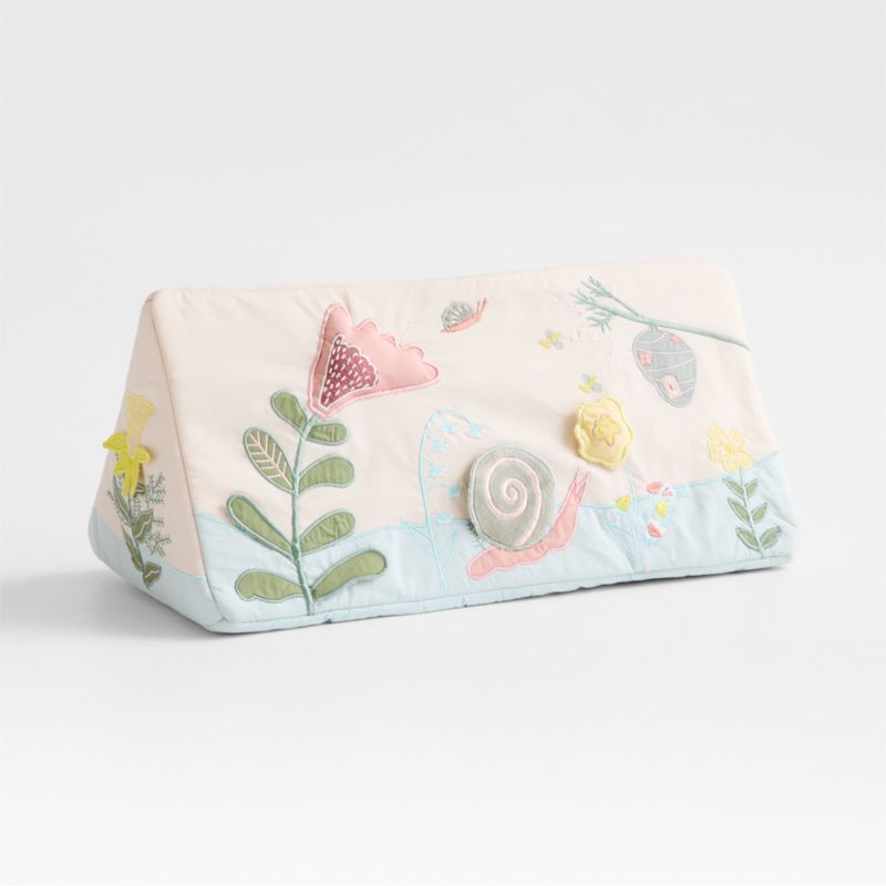 Let the fun bloom with our Garden Baby tummy time toy. Designed with soft cotton and plush padding, it offers a cozy, supportive surface for early play. The cheerful floral design features interactive elements like crinkly butterfly wings, a baby-safe mirror and a hidden bee to help engage developing senses. With its curved shape and garden-inspired details, it's a sweet way to make tummy time more fun at home or on the go.