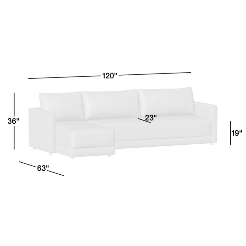 Gather 2-Piece Bench Sectional Sofa with Chaise Lounge26"Hheight120"Wwidth63"DdepthMeasurements are in inches.