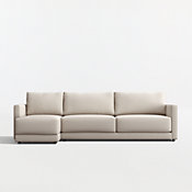 Striking the perfect balance between maximum comfort and modern style, our Gather sectional sofa is clean-lined and current. Boxy, extra-plush seat cushions have inner-coil construction for maximum comfort and durability. Fiber-filled back cushions settle you in for the ultimate lounge.