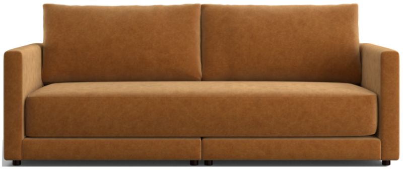 Gather strikes the perfect balance between comfort and modern style. This sofa comprises two separate pieces, making it delivery-friendly for apartments and homes with narrow hall-and doorways. Enjoy the clean lines, current style and the comfy-but-not-too-deep sit of the boxy, extra-plush bench seat. Trim top-stitching and seamless armrests keep the look neat, not fussy.