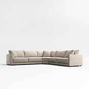 Clean-lined and current, our Gather sectional seating strikes the perfect balance between comfort and modern style. The petite sectional—a three-piece configuration of left- and right-arm sofas anchored by a corner—breaks new ground with thin decks that put all the focus on the boxy, extra-plush seat cushions that sit comfy but not too deep. Trim top-stitching and seamless armrests keep the look neat, not fussy. An exclusive Crate and Barrel design, the Gather three-piece sectional is made with engineered wood certified by the Forest Stewardship Council (FSC ®), the environmental gold standard for responsibly managed forests.