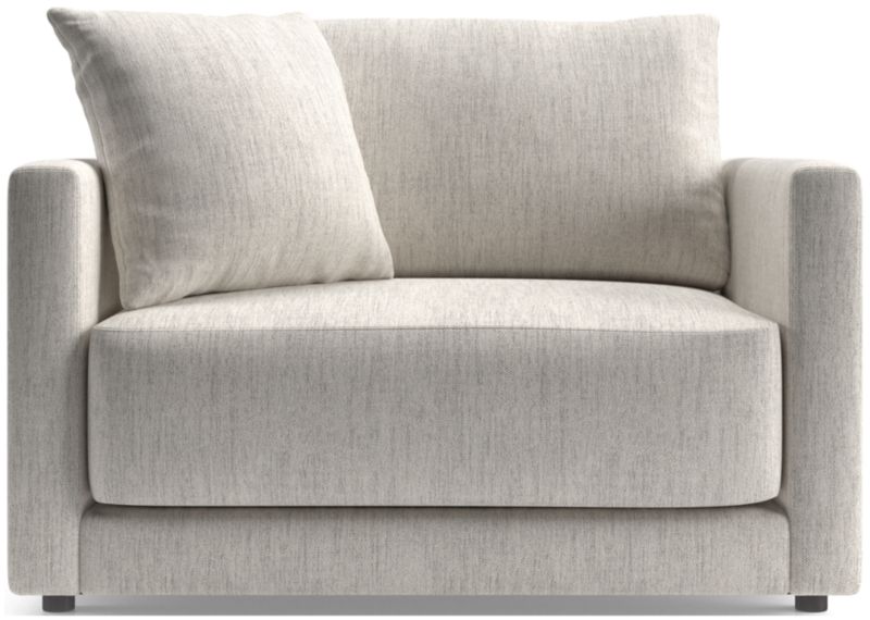 Striking the perfect balance between comfort and modern style, Gather is clean-lined and current. The roomy chair and a half features a boxy, extra-plush seat cushion made with inner-coil construction for maximum comfort and durability. A fiber-filled back cushion settles you in for the ultimate lounge.