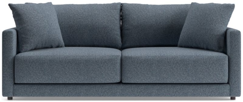 Everyone's invited to Gather. Clean-lined and current, our Gather sofa strikes the perfect balance between comfort and modern style. Scaled for smaller living spaces, the Gather sofa breaks new ground with a thin deck that puts all the focus on its boxy, extra-plush seat cushions that sit comfy but not too deep. Trim top-stitching and seamless armrests keep the look neat, not fussy. An exclusive Crate and Barrel design, the Gather sofa is made with engineered wood certified by the Forest Stewardship Council (FSC ®), the environmental gold standard for responsibly managed forests.