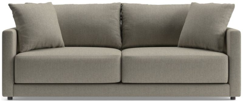 Everyone's invited to Gather. Clean-lined and current, our Gather sofa strikes the perfect balance between comfort and modern style. Scaled for smaller living spaces, the Gather sofa breaks new ground with a thin deck that puts all the focus on its boxy, extra-plush seat cushions that sit comfy but not too deep. Trim top-stitching and seamless armrests keep the look neat, not fussy. An exclusive Crate and Barrel design, the Gather sofa is made with engineered wood certified by the Forest Stewardship Council (FSC ®), the environmental gold standard for responsibly managed forests.